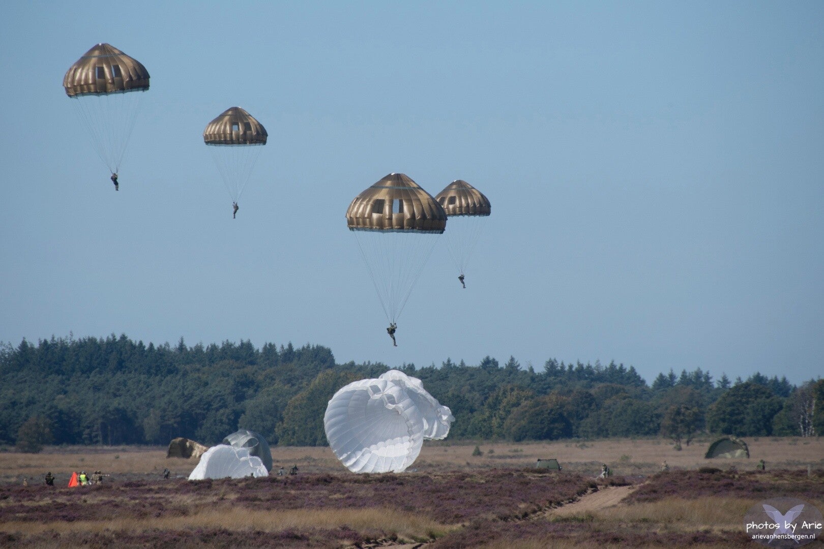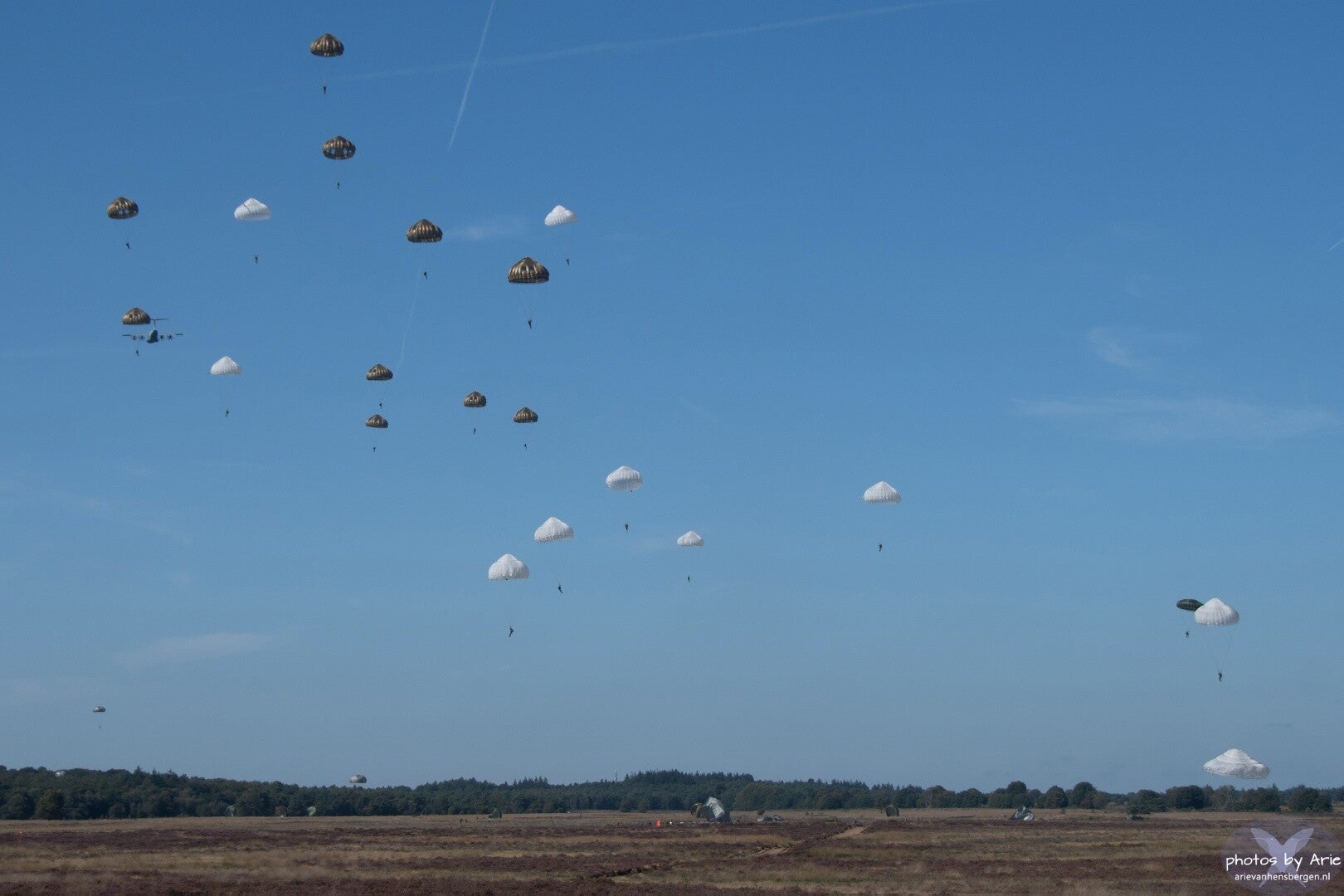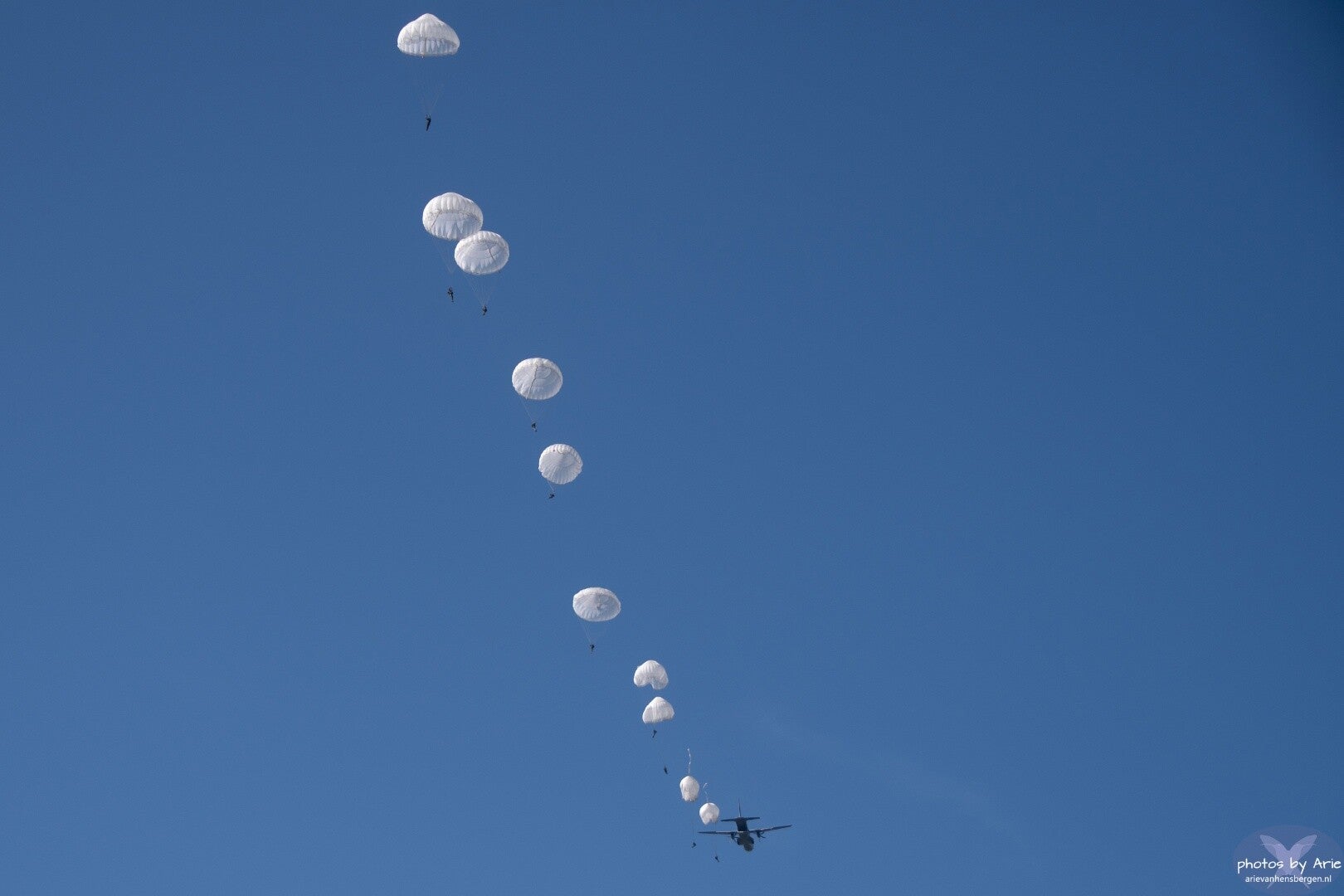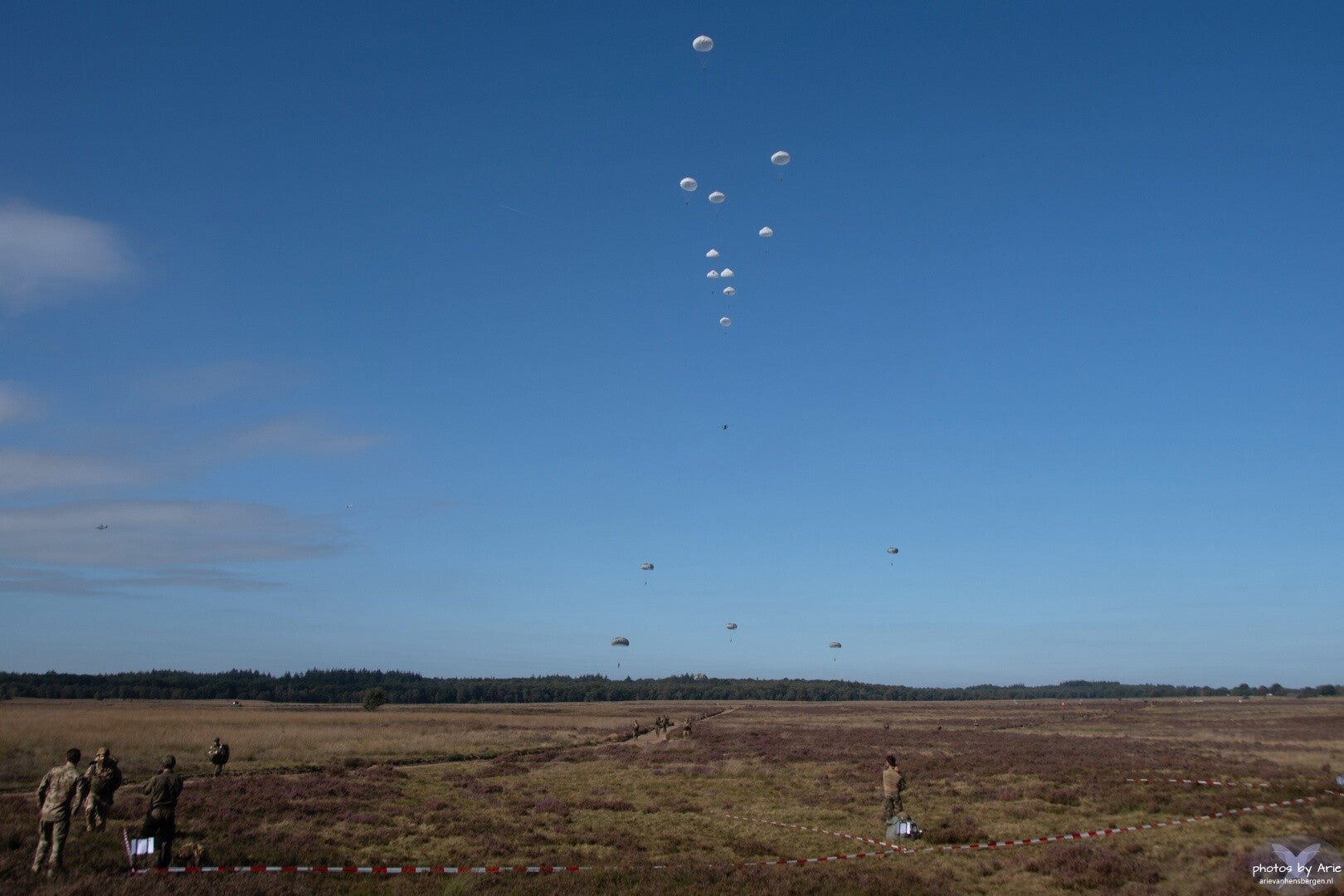 After yesterday's bad weather, today was a beautiful day for the paratroopers. Photos of the morning run and the early afternoon run. The morning run concluded with a flyby from Ede. The afternoon run also included a flyby, this time from Arnhem.