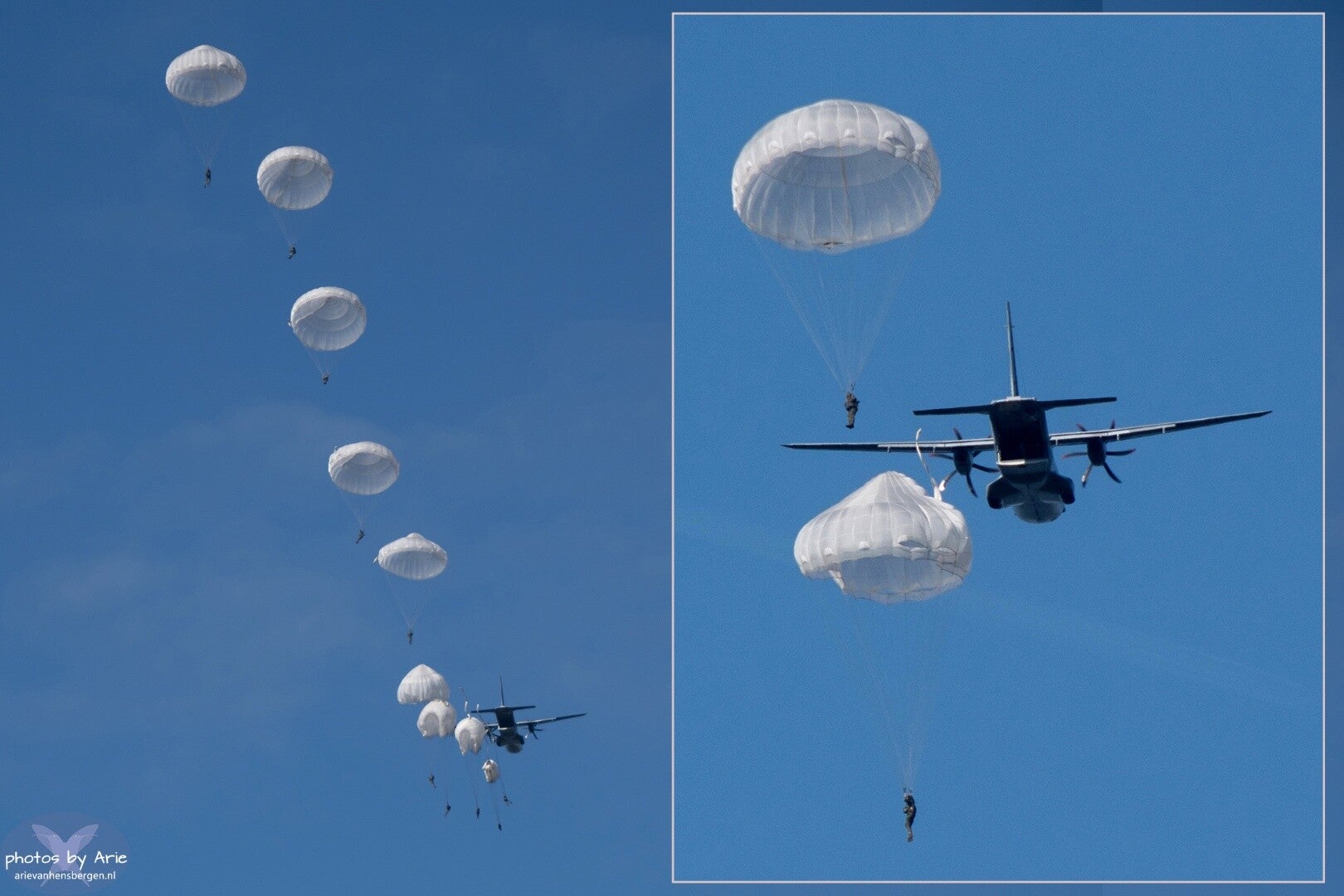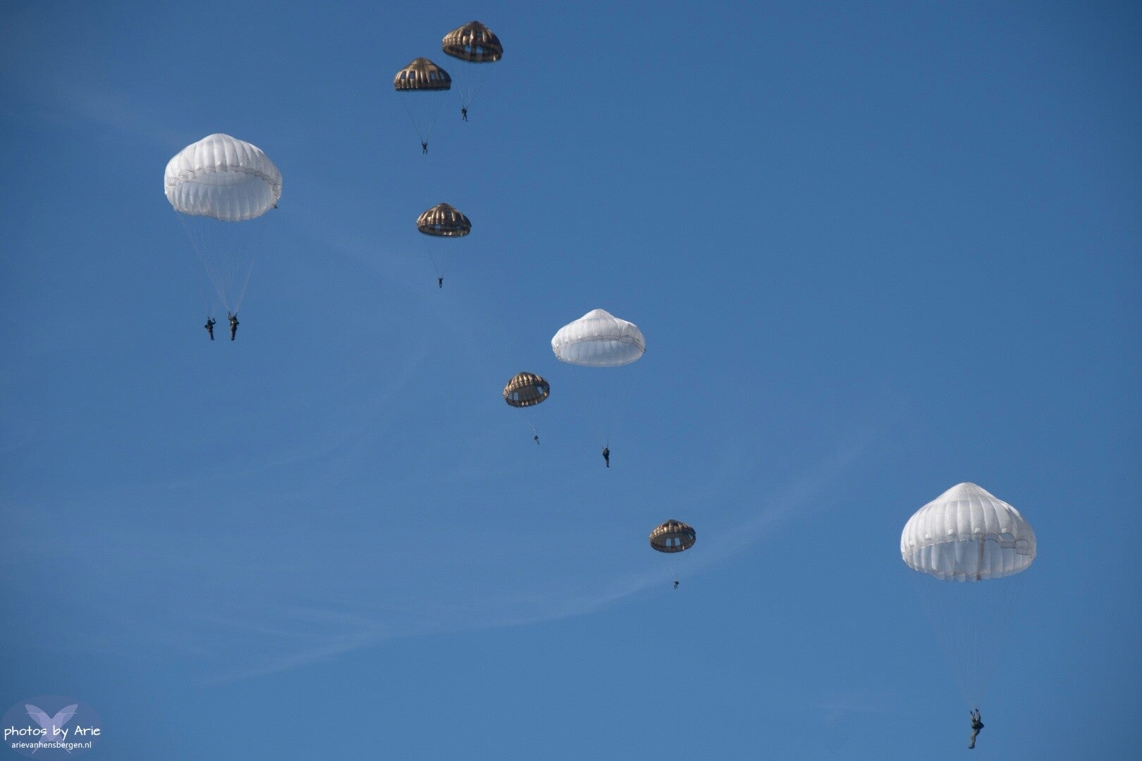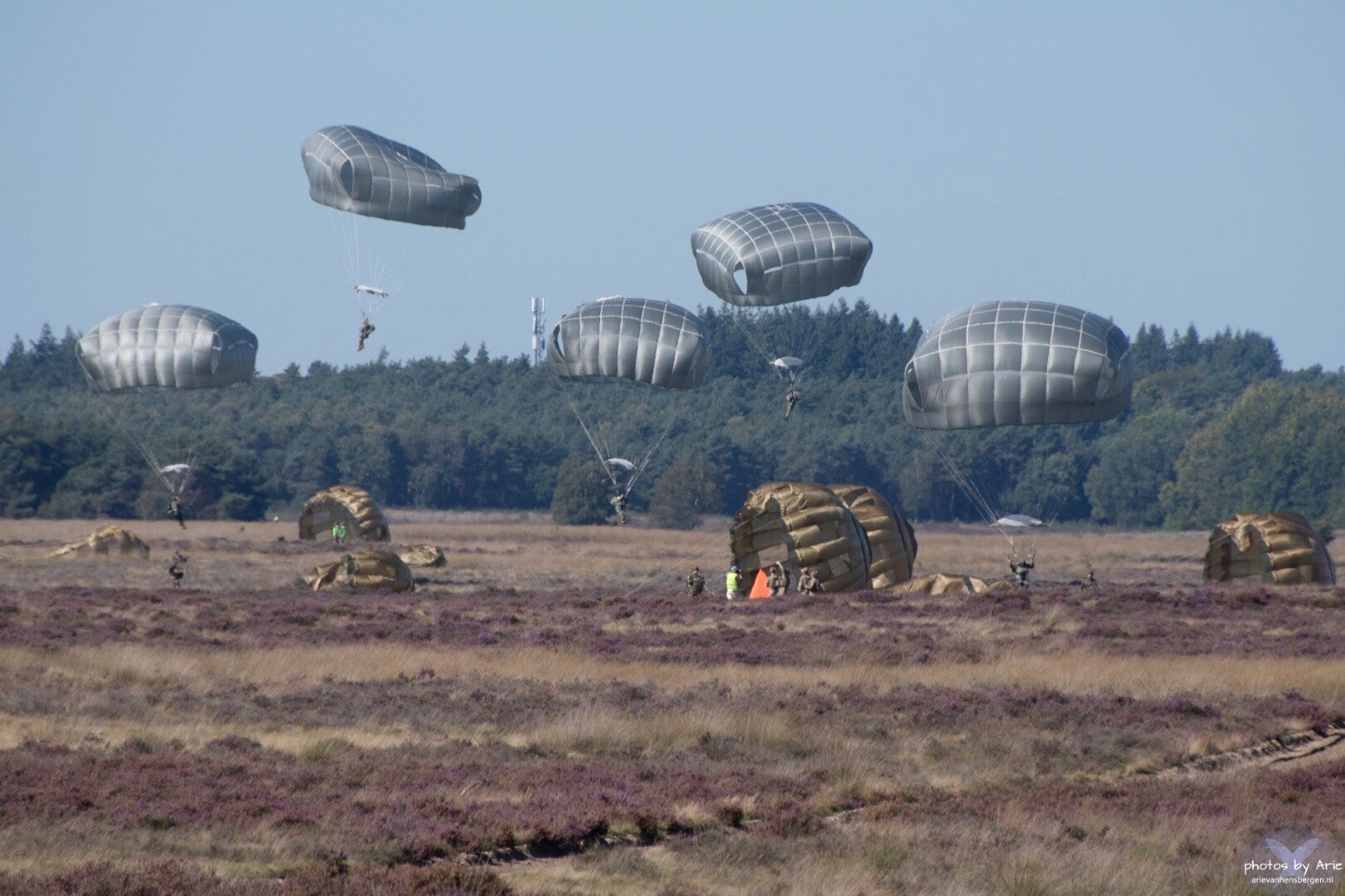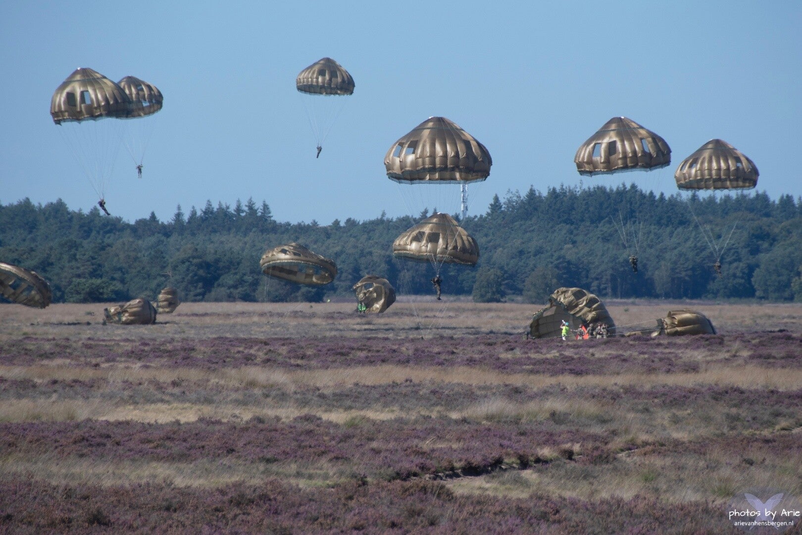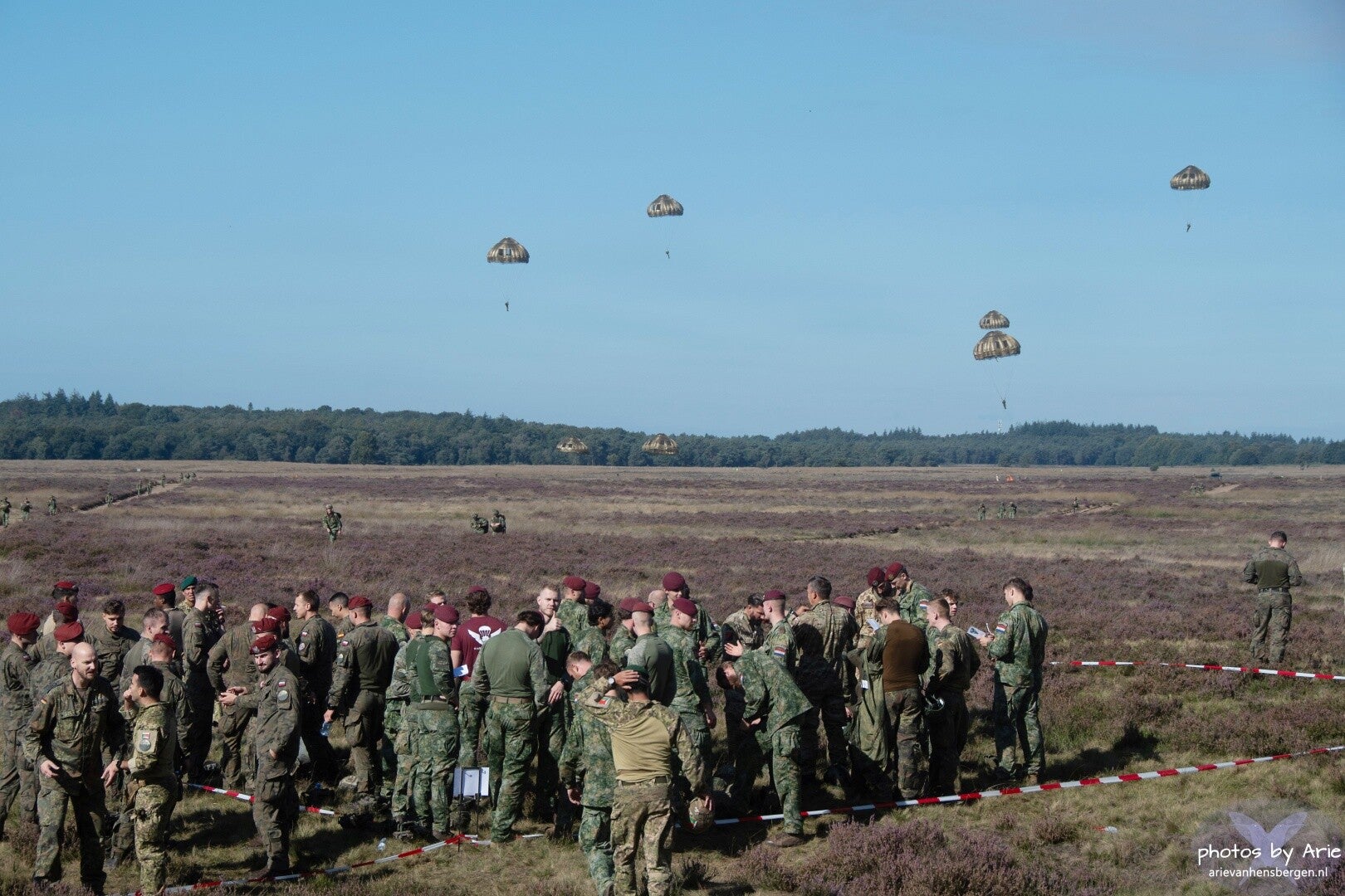 After yesterday's bad weather, today was a beautiful day for the paratroopers. Photos of the morning run and the early afternoon run. The morning run concluded with a flyby from Ede. The afternoon run also included a flyby, this time from Arnhem.