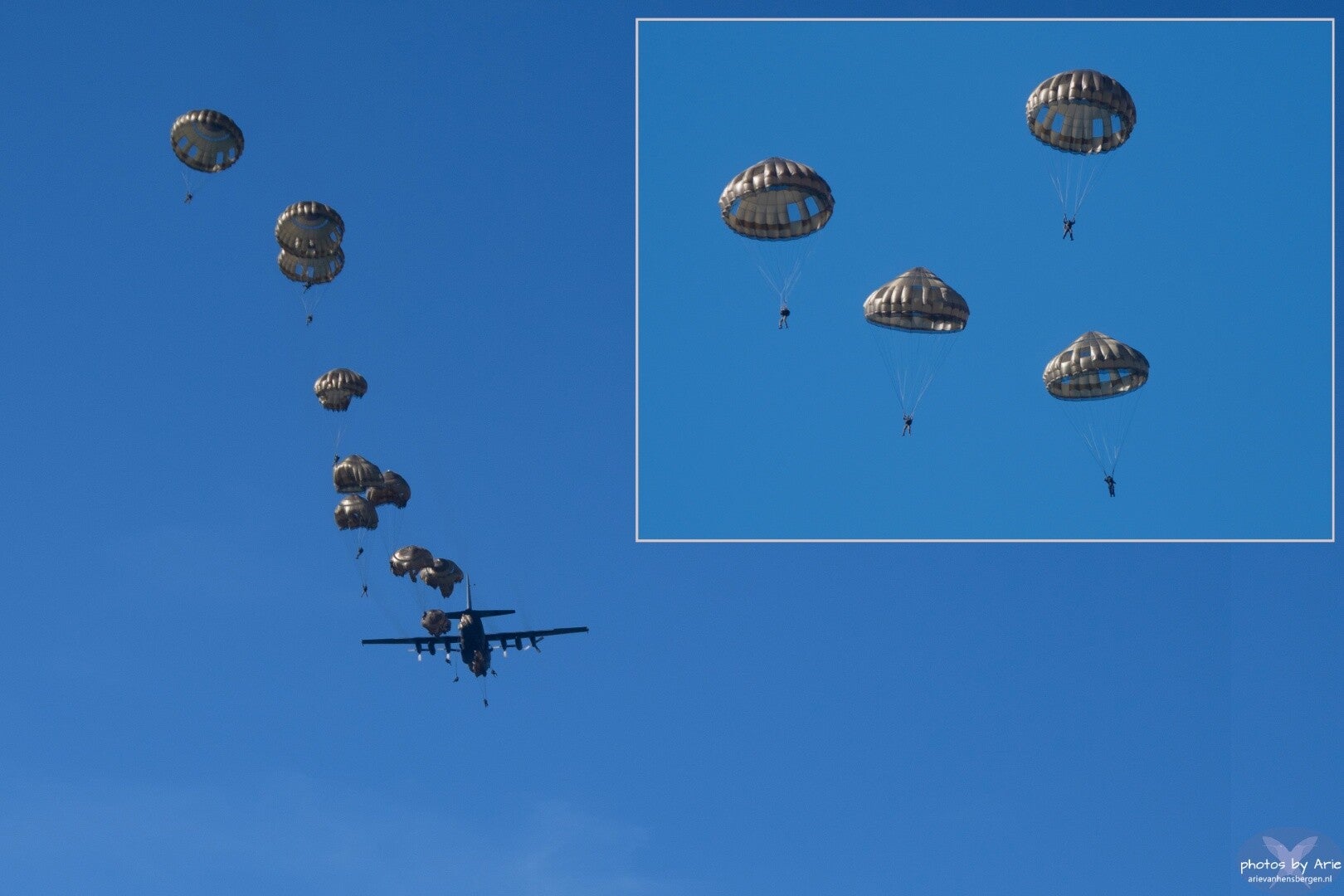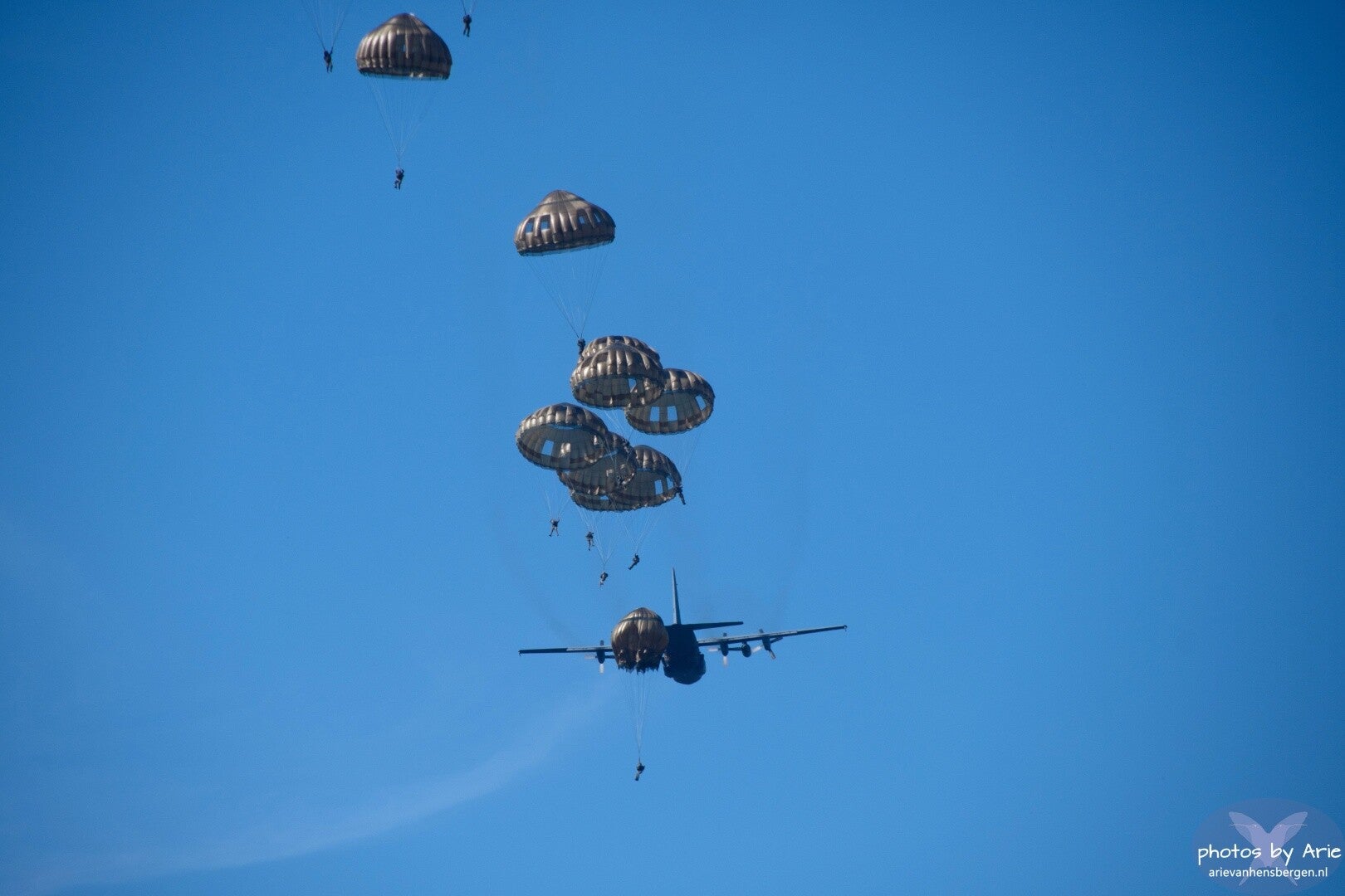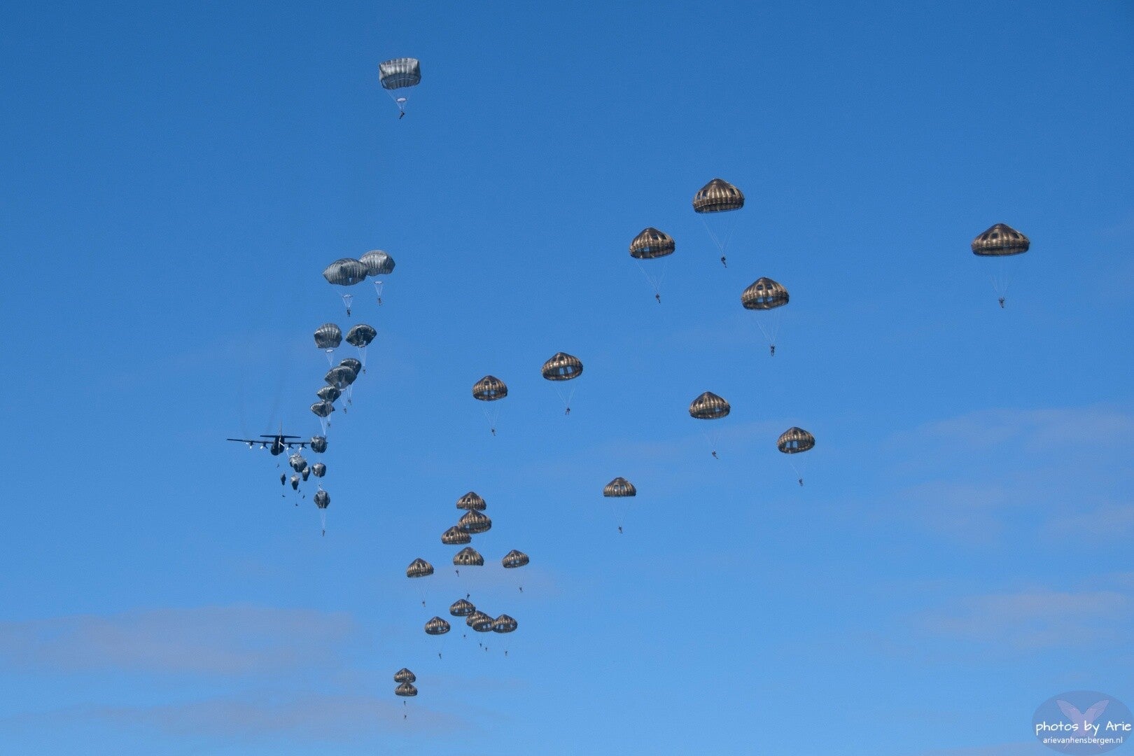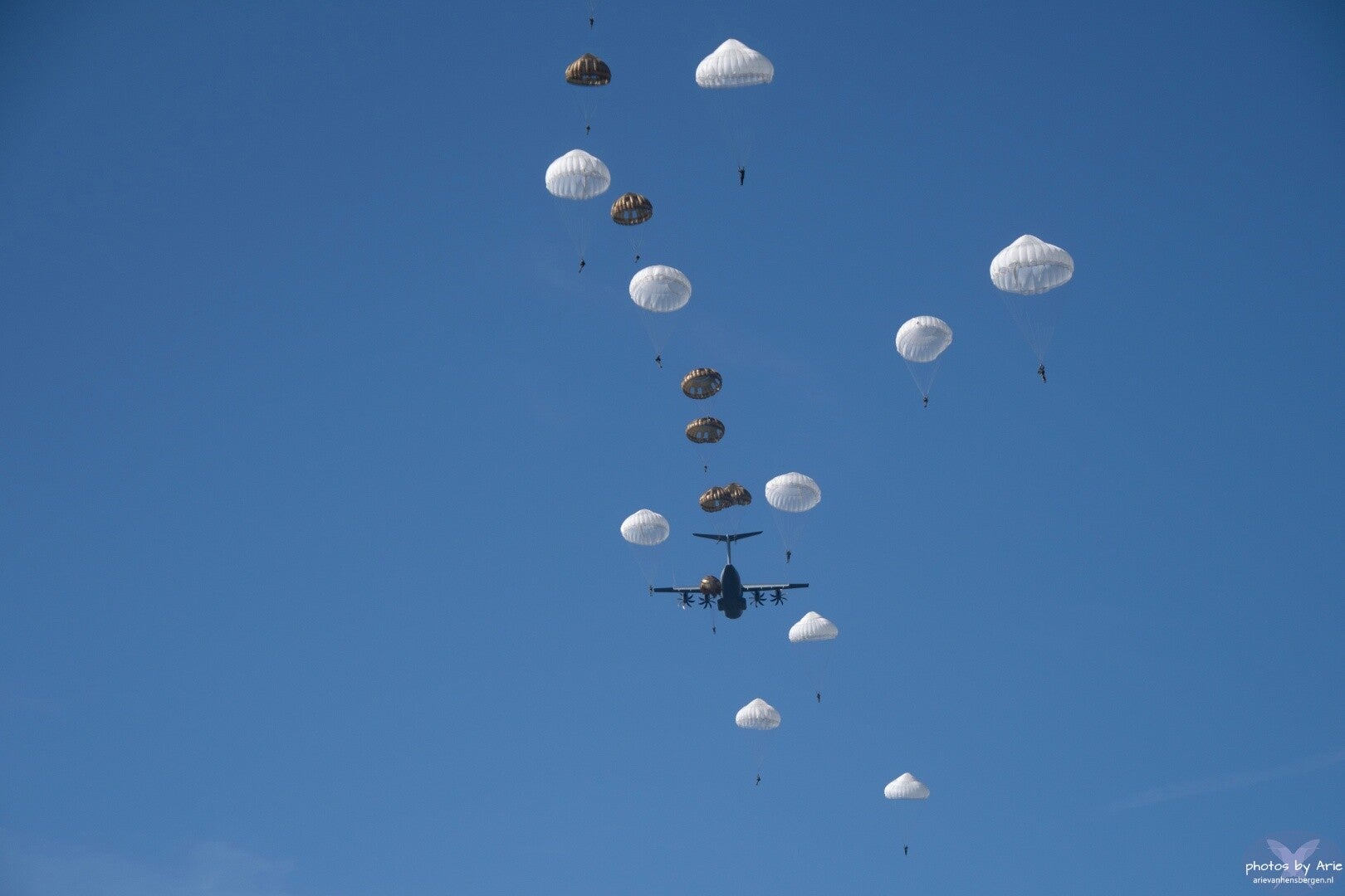 After yesterday's bad weather, today was a beautiful day for the paratroopers. Photos of the morning run and the early afternoon run. The morning run concluded with a flyby from Ede. The afternoon run also included a flyby, this time from Arnhem.