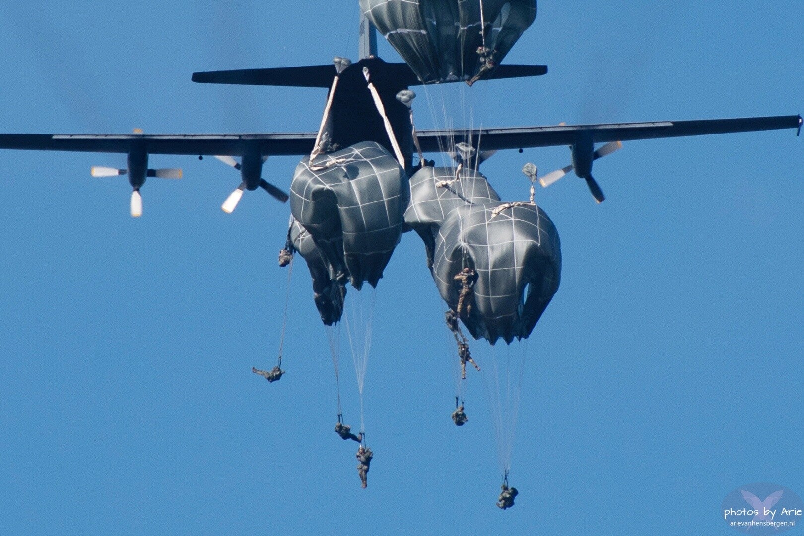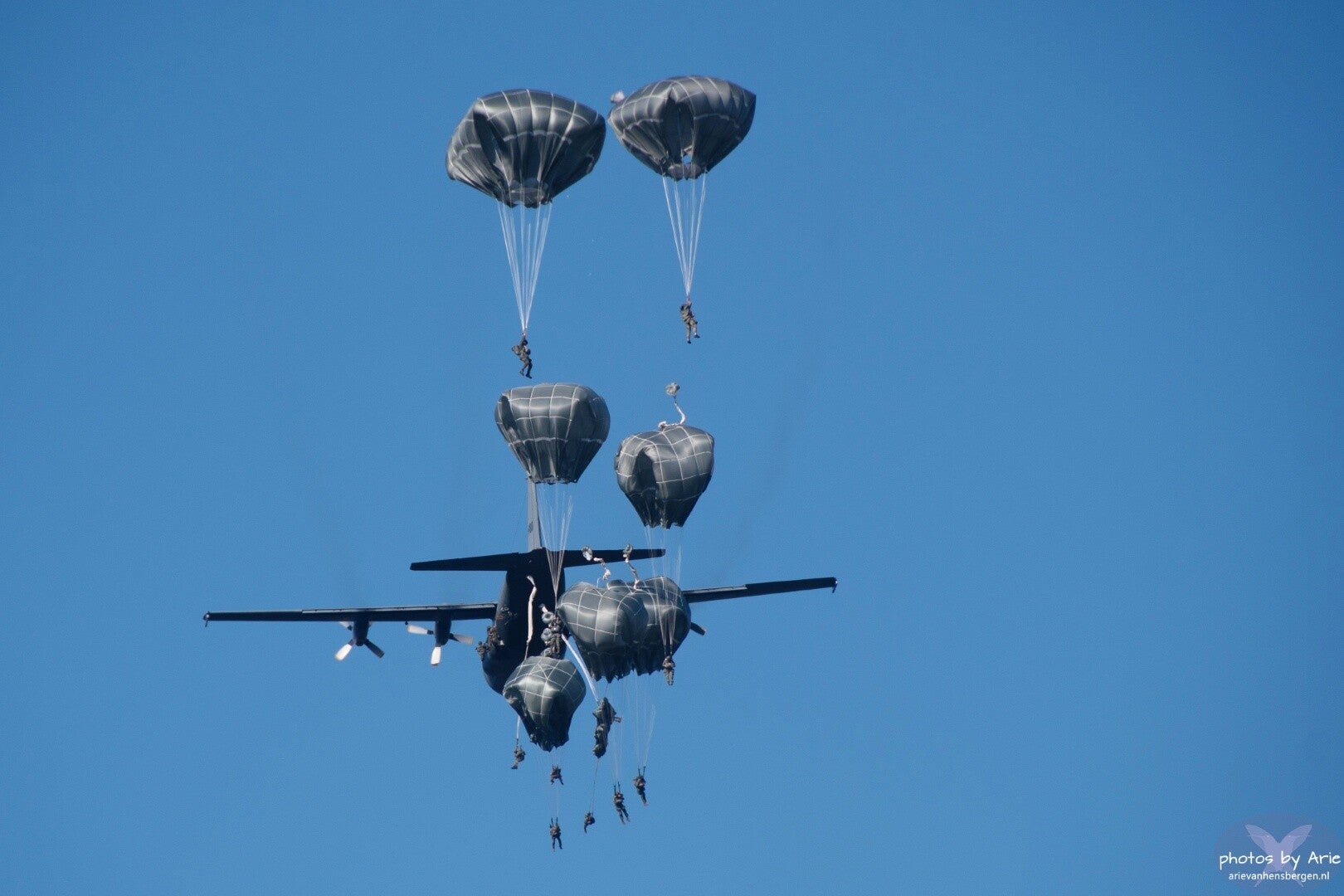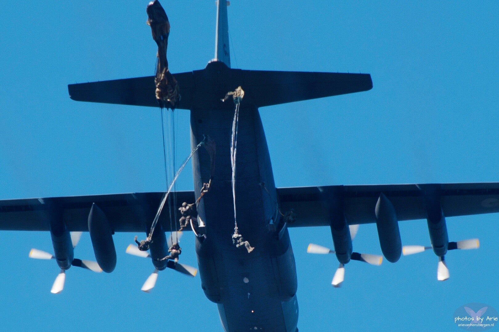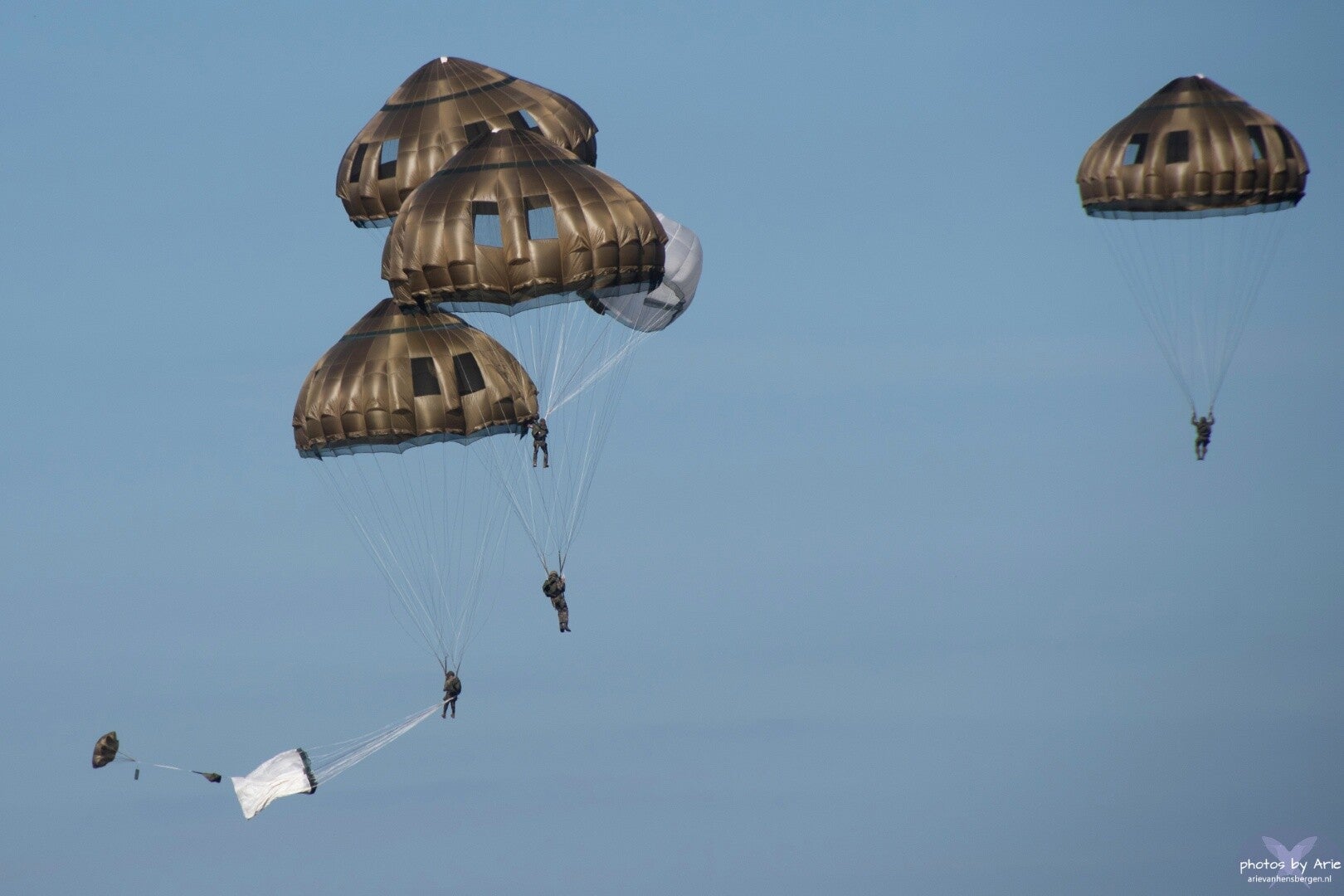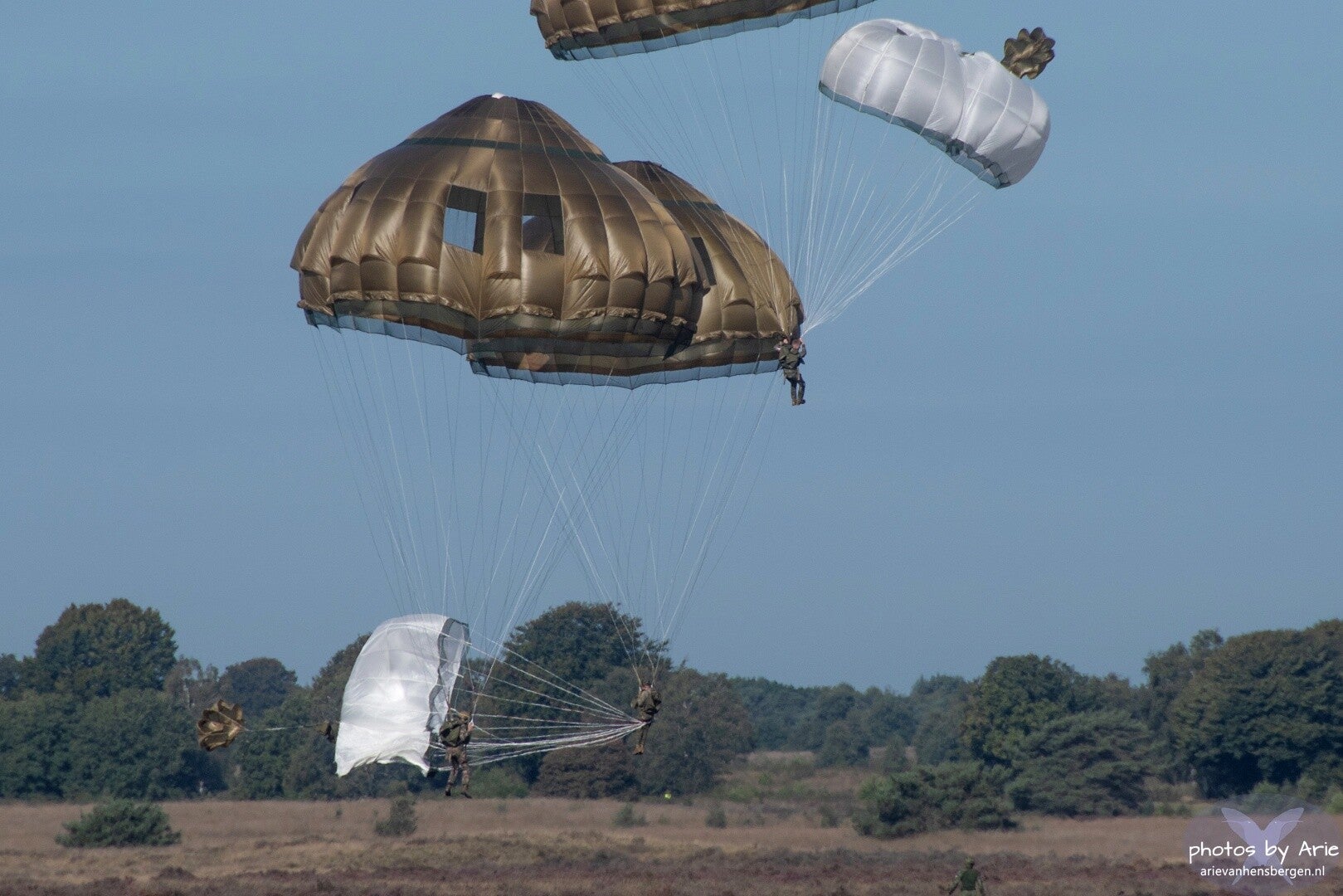 After yesterday's bad weather, today was a beautiful day for the paratroopers. Photos of the morning run and the early afternoon run. The morning run concluded with a flyby from Ede. The afternoon run also included a flyby, this time from Arnhem.