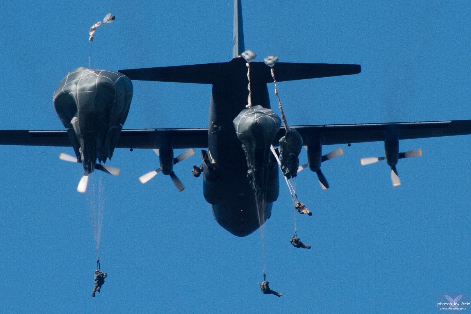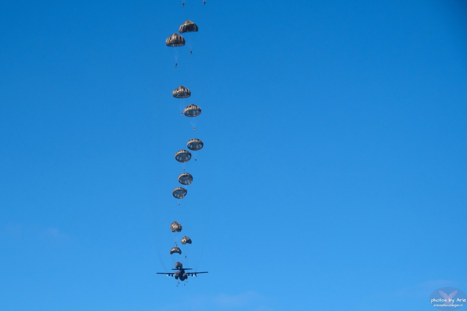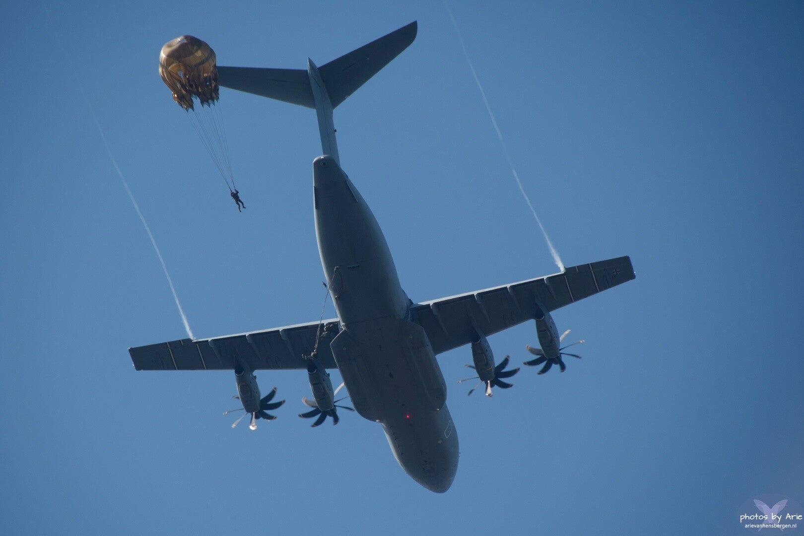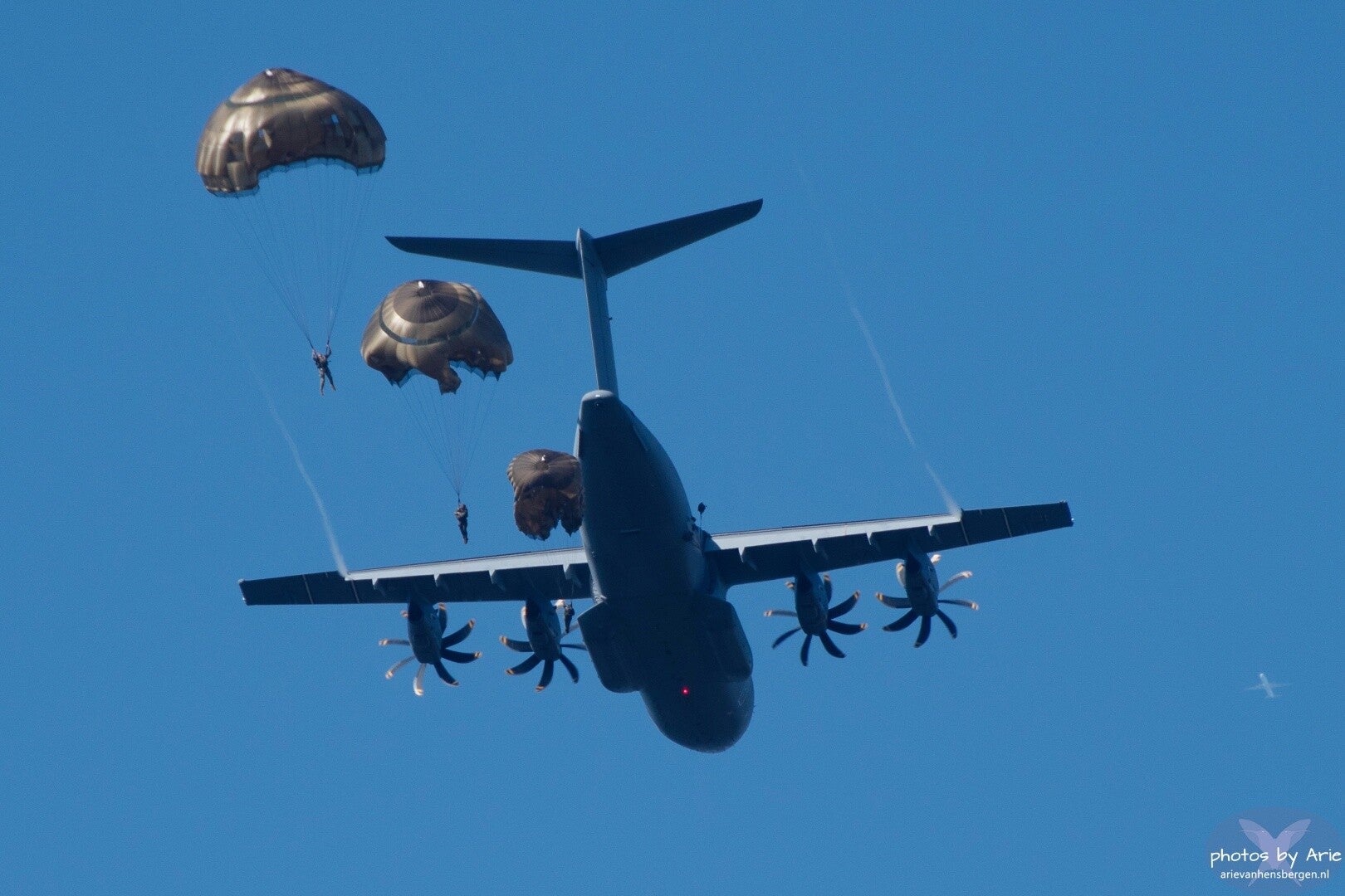 After yesterday's bad weather, today was a beautiful day for the paratroopers. Photos of the morning run and the early afternoon run. The morning run concluded with a flyby from Ede. The afternoon run also included a flyby, this time from Arnhem.