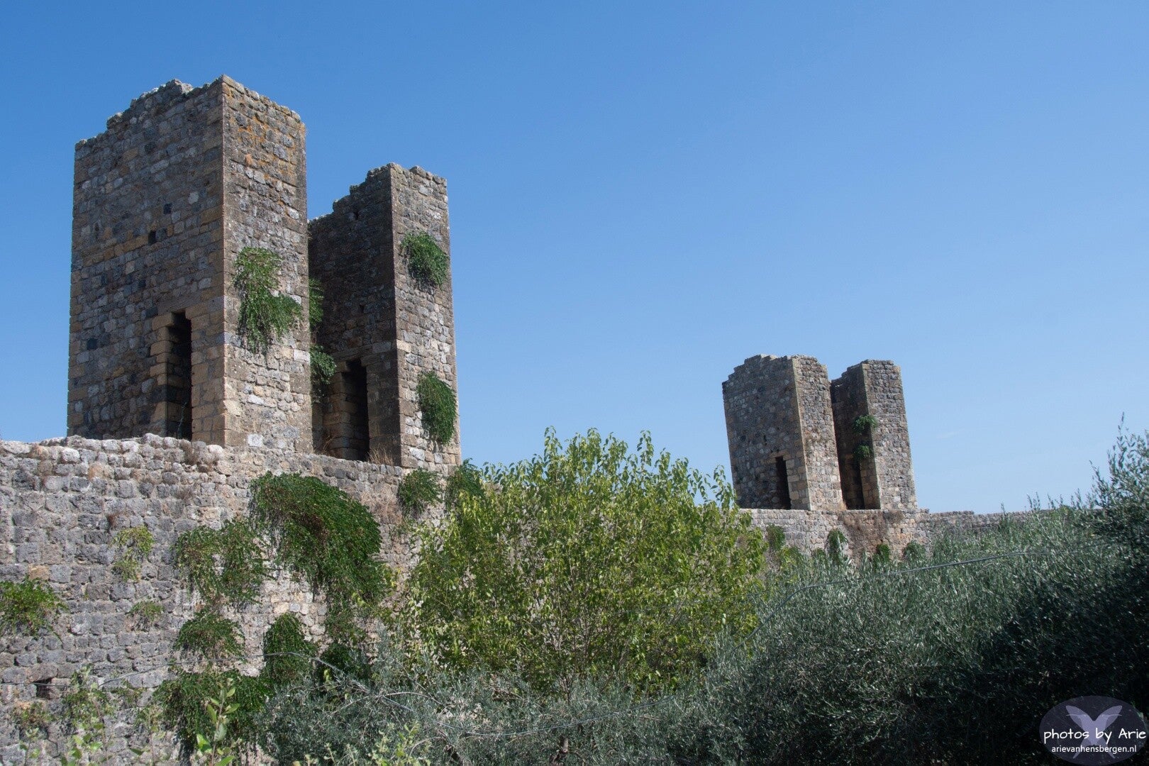 Monteregioni is een klein, ommuurd dorpje boven op een heuvel. Er zijn 2 parkeerplaatsen: één halverwege de heuvel voor bussen en auto's. Wij hadden geluk en mochten doorrijden naar boven naar een kleinere parkeerplaats net buiten de muur.