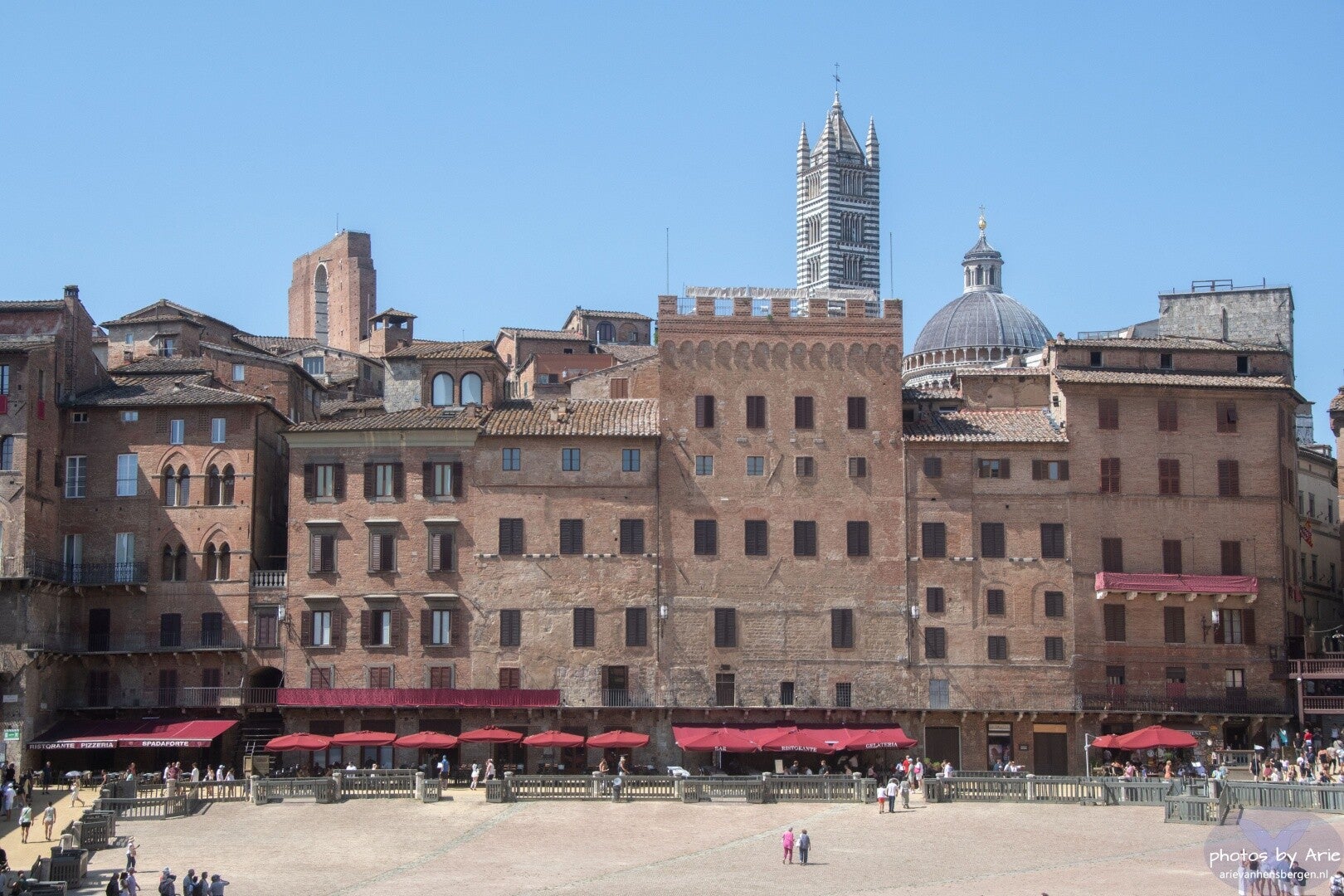 Omdat ons logeeradres vlakbij Siena lag, hebben we Siena twee keer bezocht. De paardenrace, il Palio, werd de 16e gehouden. Deze hebben we niet bekeken gezien de enorme drukte. Een dag later zijn we er wel geweest. De klei lag nog op het plein, de tribunes stonden ernog. Dus toch een beetje sfeer geproefd :)